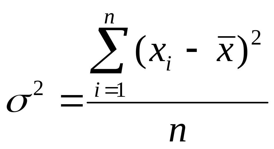 Середнє квадратичне відхилення – характеризує абсолютне коливання значень варіюючої ознаки і виражається в тих самих одиницях, що і варіанти.