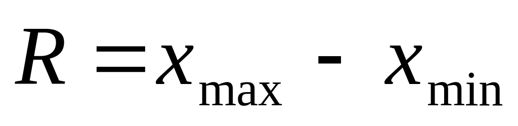 Розмах варіації – це різниця між найбільшим і найменшим значенням ознаки: