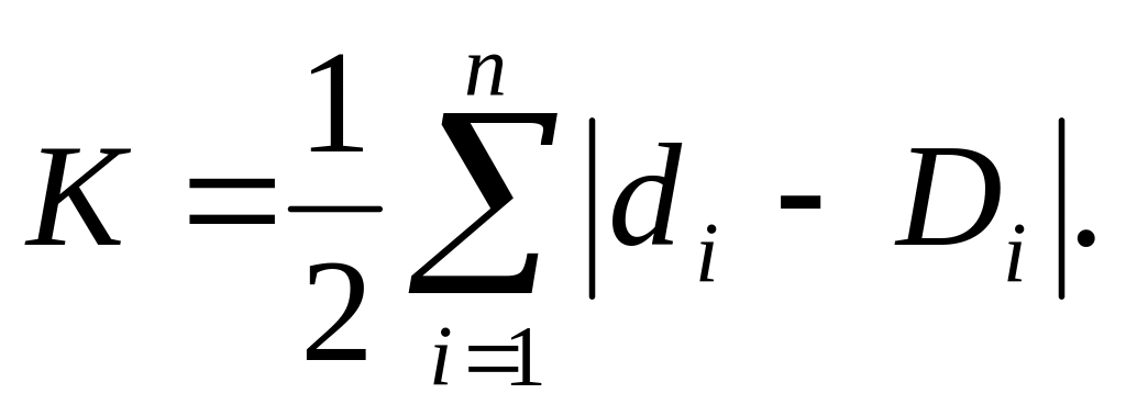 Якщо розподіл значень ознаки в сукупності рівномірний. То частки однакові - = , відхилення часток свідчать про певну концентрацію. Коефіцієнт концентрації: