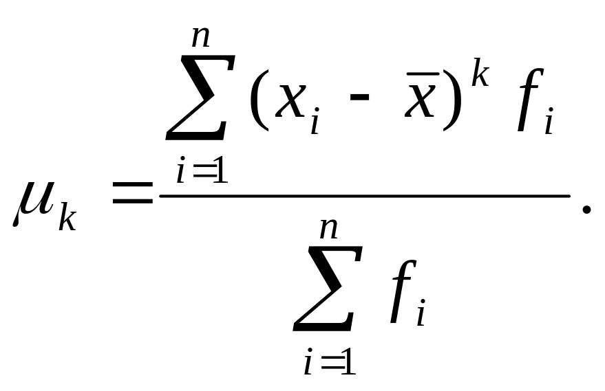 Асиметрія і ексцес – дві пов’язані з варіацією властивості форми розподілу. Комплекс їх оцінювання виконується на базі центральних моментів розподілу – середньої арифметичної k-того ступеня відхилення індивідуальних значень ознаки від середньої: