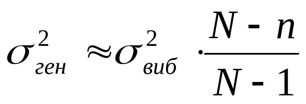 де N − обсяг сукупності; n − обсяг вибірки; σ2 – дисперсія генеральна.