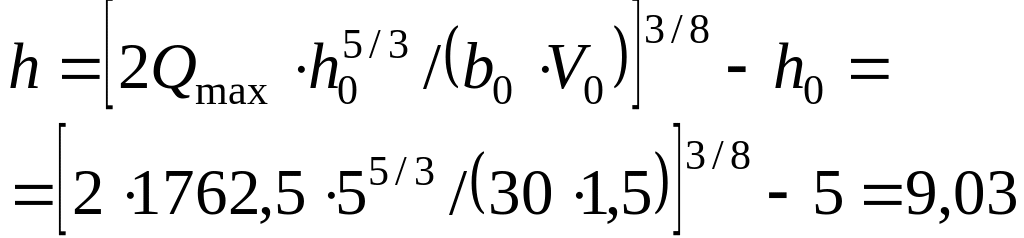 Высота подъема воды в реке при прохождении паводка h определяется по формуле (2.5):