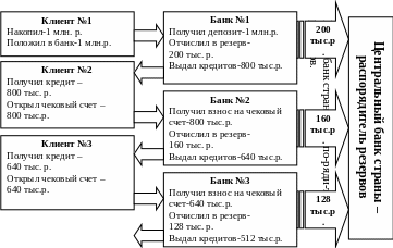 В банковской системе страны, помимо Центрального банка, действуют еще два коммерческих банка – «Национальный банк» и «Международный банк». Избыточные резервы первого составляют 10 млн. сомов, второго – 20млн. сомов. Норма банковских резервов составляет 5%. Определите кредитный потенциал всей банковской системы страны.