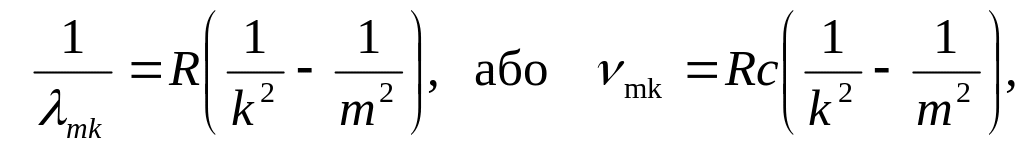 где R – постоянная величина; к = 1, 2, 3, …; m = k+1, k+2, k+3, …- соответствующие значения главного квантового числа.