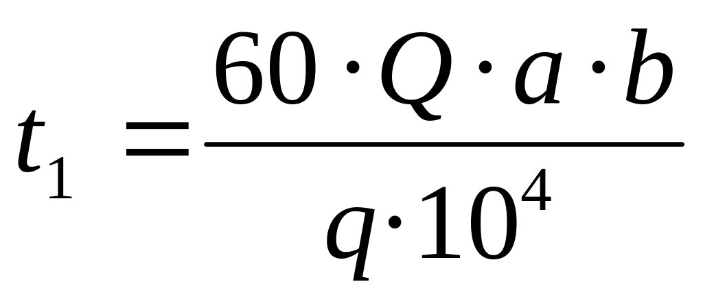 2) В случае проведения обработки заданной площади сплошным способом минутный расход рабочей жидкости q (л/мин) для выбранного такта движения t (с/м) определяют по формуле