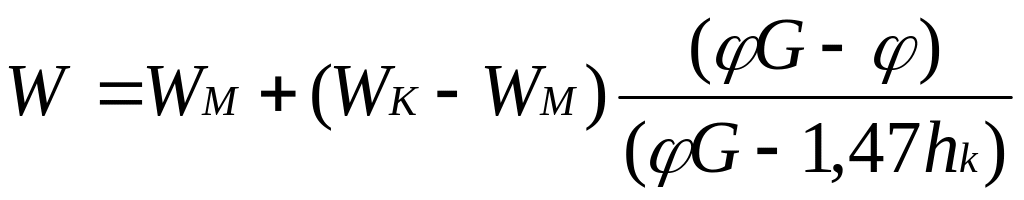 Для случая неглубоких грунтовых вод, когда влажность корнеобитаемого слоя колеблется в диапазоне от m до WM и 01,47 hk, Голованов предлагает использовать зависимость в виде: