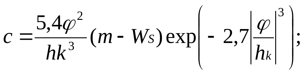 при W=m, 0: c=0; при Wk Wm, 0hk: