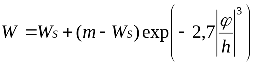 При изменении влажности в максимально широком диапазоне от полного насыщения до влажности, соответствующей МГ, между влажностью W и капиллярным потенциалом принимается следующая зависимость: