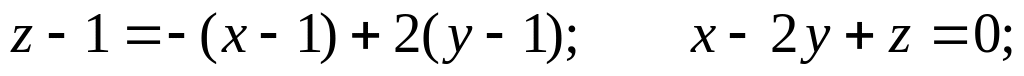 Пример. Найти уравнения касательной плоскости и нормали к поверхности