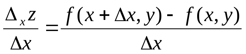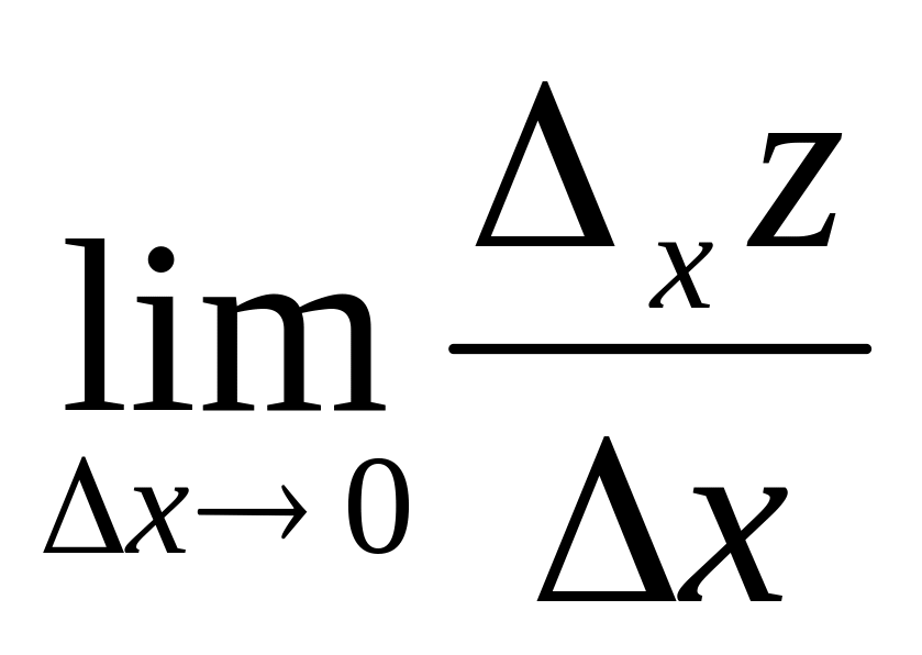 Определение. Пусть в некоторой области задана функция z = f(x, y). Возьмем произвольную точку М(х, у) и зададим приращение Dх к переменной х. Тогда величина Dxz = f( x + Dx, y) – f(x, y) называется частным приращением функции по х.
