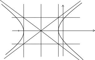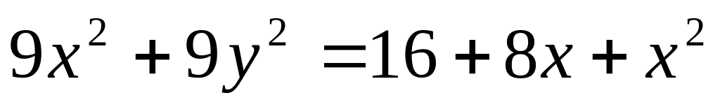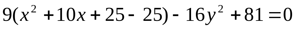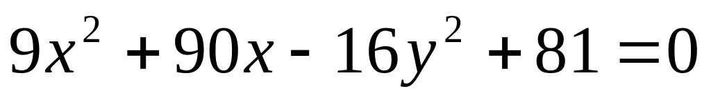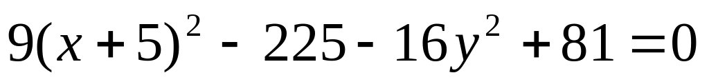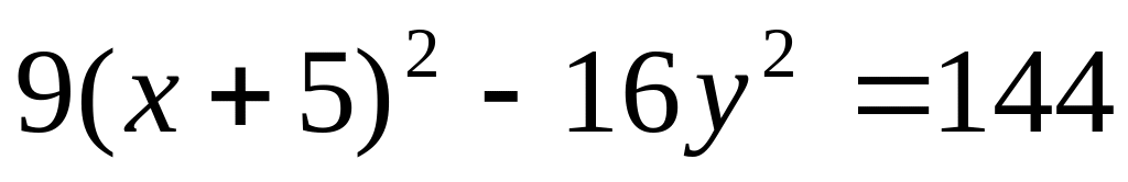 Получили каноническое уравнение гиперболы. Из уравнения видно, что гипербола сдвинута вдоль оси Ох на 5 влево, большая полуось а равна 4, меньшая полуось b равна 3, откуда получаем c2 = a2 + b2 ; c = 5; e = c/a = 5/4.