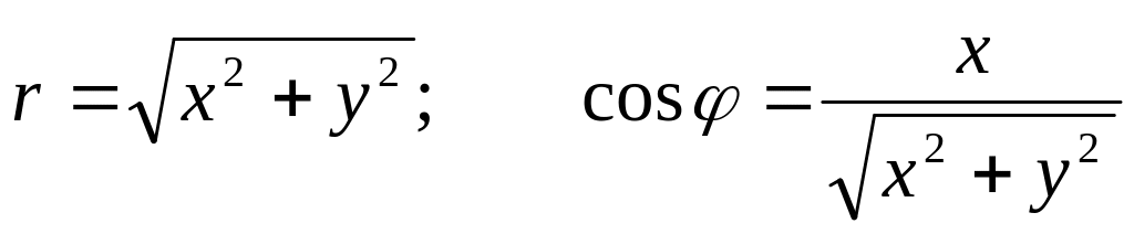Можно установить связь между полярной системой координат и декартовой прямоугольной системой, если поместить начало декартовой прямоугольной системы в полюс, а полярную ось направить вдоль положительного направления оси Ох.