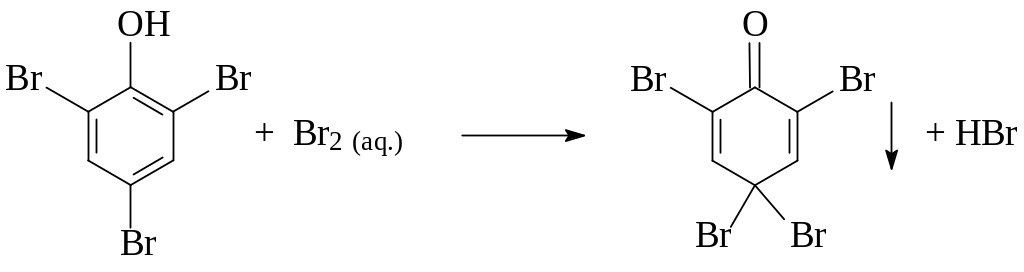 В пробирку помещают несколько кристаллов фенола и 2 мл воды и добавляют к эмульсии несколько капель бромной воды при постоянном встряхивании до образования белого осадка2. К отверстию пробирки подносят влажную лакмусовую бумагу.