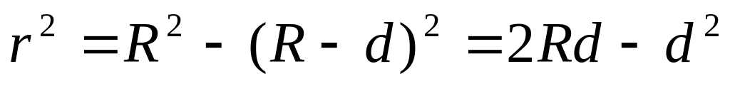 Выразим размеры (радиусы r) наблюдаемых колец Ньютона через радиус кривизны линзы R, длину волны применяемого света λ и порядковый номер кольца m. Геометрическая разность хода интерферирующих лучей равна 2d, где d – толщина воздушного зазора в данном месте.