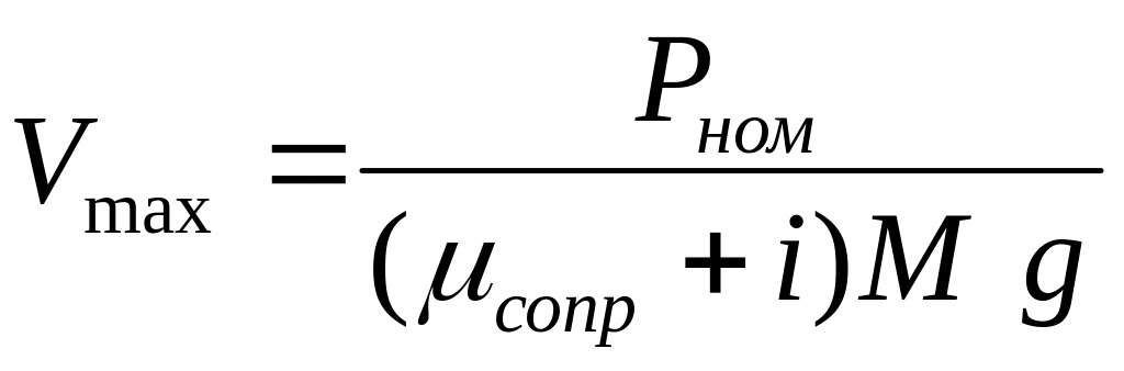 Обозначим sin α = i. Примем cos a = 1. Силу сопротивления движению определим по закону Кулона Fсопр = μсопрN = μсопрМ g (согласно 4.16). Подставив силу сопротивления в уравнение (4.15), получим для ускорения формулу