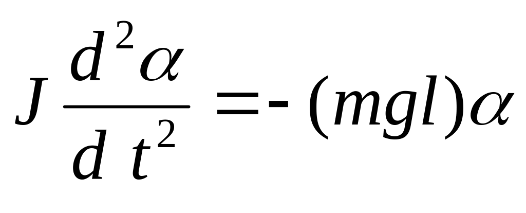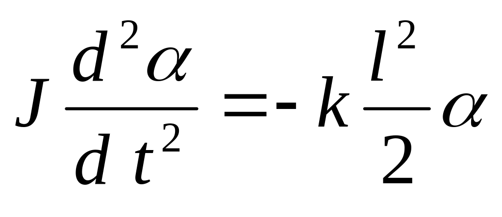 Здесь угловое ускорение записано как вторая производная от угла поворота по времени. Решением этого дифференциального уравнения должна быть функция, у которой вторая производная имеет такой же вид, как и сама функция, но противоположного знака. Например, это может быть функция косинуса