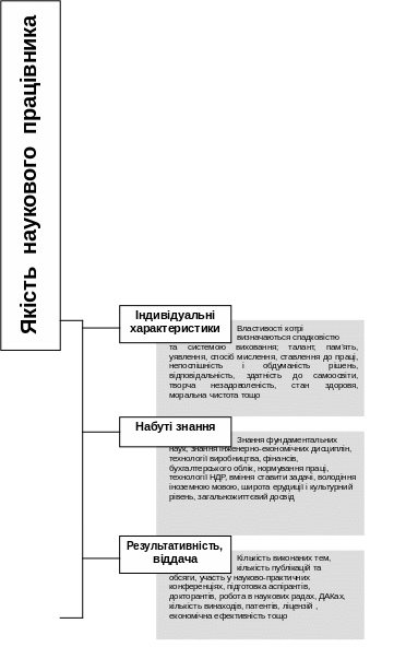В сучасних умовах господарювання актуальною є проблема оцінки якості наукових кадрів. У методах оцінки якості кадрів, що використовуються на практиці, не завжди обґрунтовані критерії, не враховуються потенціальні можливості та дійсна віддача працівників. Часто оцінка працівників враховує минулі заслуги або недоліки в роботі, суб’єктивне враження деяких керівників наукових робіт про позитивні та негативні якості співробітників, суб’єктивність думок членів атестаційної комісії. Пристальну увагу треба звернути на удосконалення методів оцінки інтелектуальних якостей науковців, інженерно-технічних працівників, лаборантів.