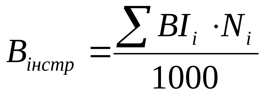 де ВІ.і - витрати інструменту на 1000 шт. і-го виробу, грн.;