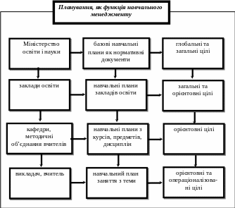 Для кращого розуміння певних теоретичних положень наведемо деякі пояснення. Планування навчання є однією із функцій навчального менеджменту, яка повинна забезпечувати систематичність, послідовність навчального процесу, його наукову обґрунтованість з урахуванням особливостей об'єктів управління, навчальних цілей, принципів та закономірностей навчання.