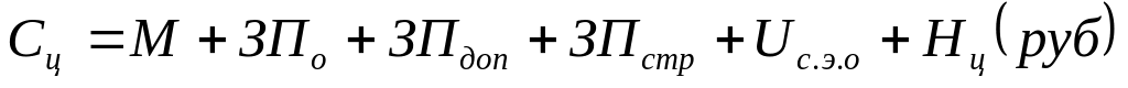 Цеховая себестоимость состоит из расходов на основные материалы за вычетом отходов М, основной ЗПо и дополнительной ЗПдоп производственных рабочих, отчисление на социальное страхование ЗПстр, расходов на содержание и эксплуатацию оборудования Uс.з.о. и цеховых расходов Нц: