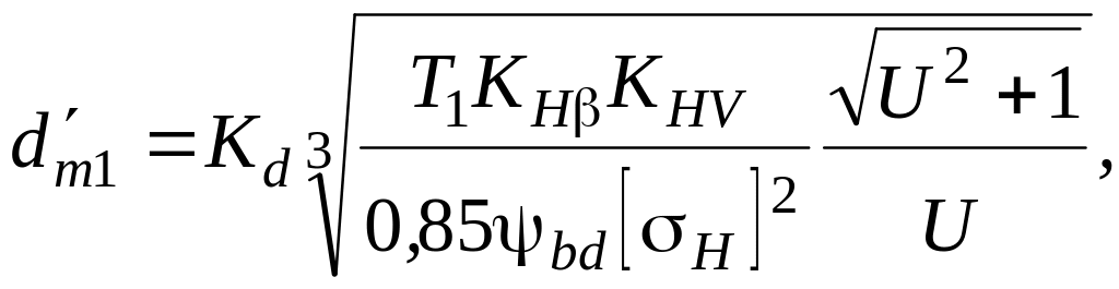 При проектировочном расчете определяют предварительное значение среднего делительного диаметра шестерни d′m1, мм
