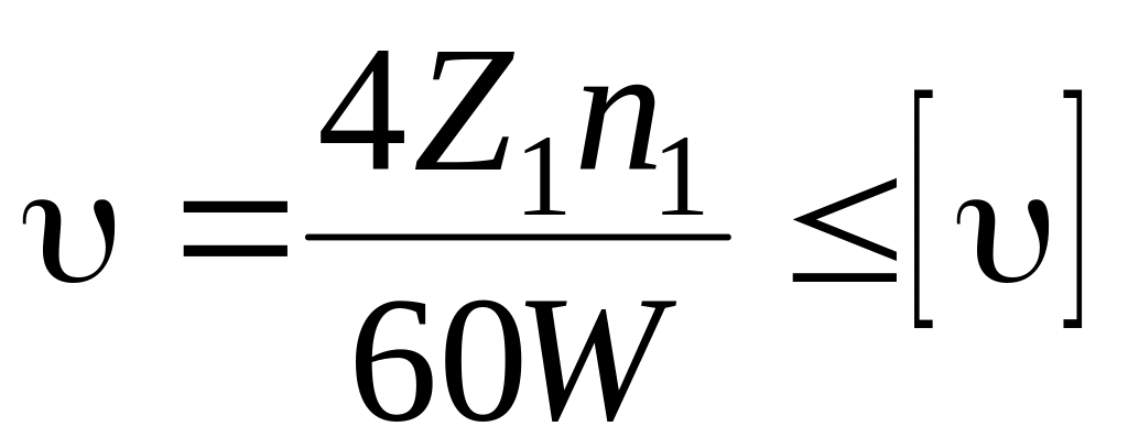 в) Рассчитать число ударов цепи υ при набегании на зубья звездочек и сбегании с них с целью исключения повышенных динамических нагрузок по формуле: