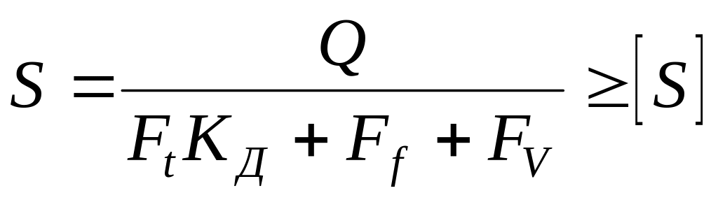 б) Действительный коэффициент запаса прочности цепи определяют по формуле: