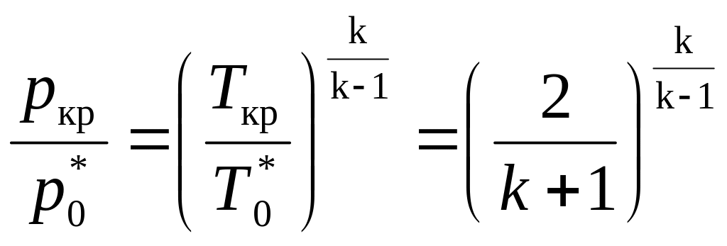 Критические параметры легко определяются, если известны параметры на входе в сопло. Используя зависимости между статическими и заторможенными (полными) параметрами, найдем связь между критическими и полными параметрами потока.