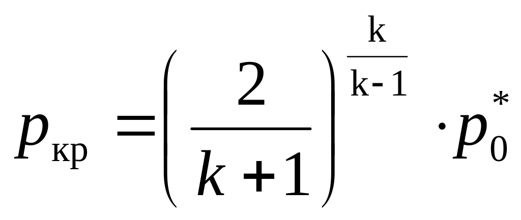 Для воздуха k = 1,4, поэтому pкр = 0,528 , т. е. критическое давление составляет 52,8 % полного давления на входе в сопло.