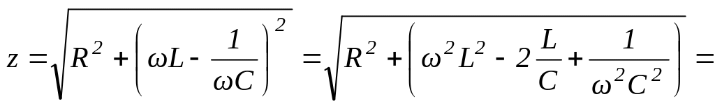 Рассмотрим частотные характеристики цепи при резонансе. В случае, когда на последовательную цепь воздействует источник синусоидального напряжения с частотой , меняющейся от 0 до , параметры цепи, а именно ее реактивное и полное сопротивления, меняются, что вызовет соответствующие изменения тока и падений напряжения на отдельных участках цепи.