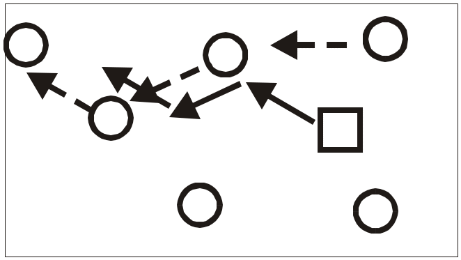 Підготовка. Гравців поділяють на дві рівні команди й утворюють два концентричні кола (Схема 5).
