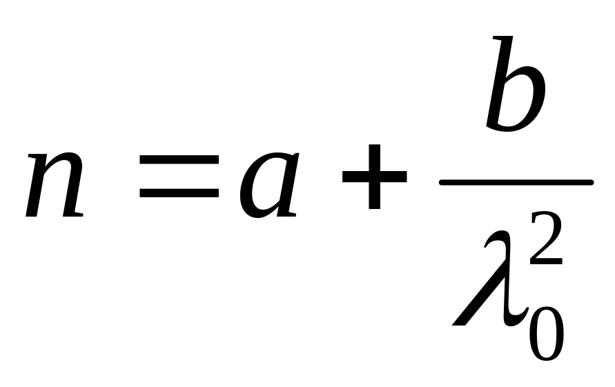 В ХIХ веке выдающийся математик Коши теоретически рассчитал зависимость показателя преломления среды от длины волны λ0. Он нашел, что эта зависимость может быть представлена в виде: