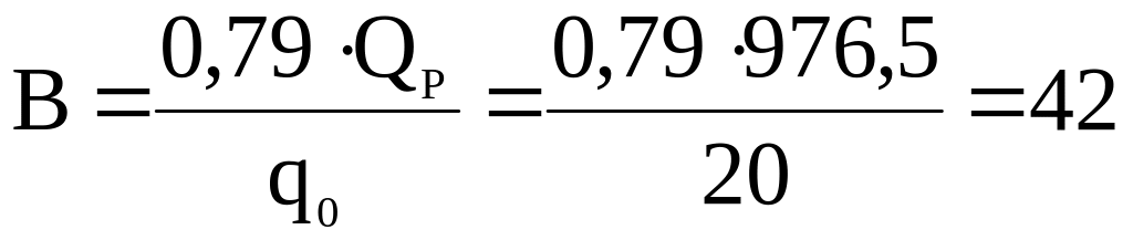 где q0 – удельный расход, принимаемый равным 20 м3/с на 1 п. м;