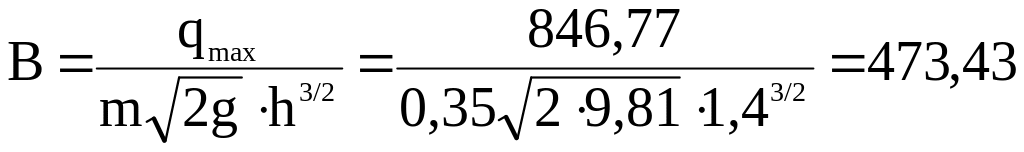 По значению qmax находят необходимую ширину сливного фронта водослива