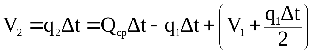 Qср=0,5(Q1+Q2) – средний за интервал расход притока (Q1, Q2 – соответствен-но, расходы в начале и конце интервала).