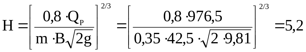 Решение уравнения (4.5) выполняется для случая регулируемого водосбро-са. Размеры водослива, напор на гребне и его отметка определяются по формулам