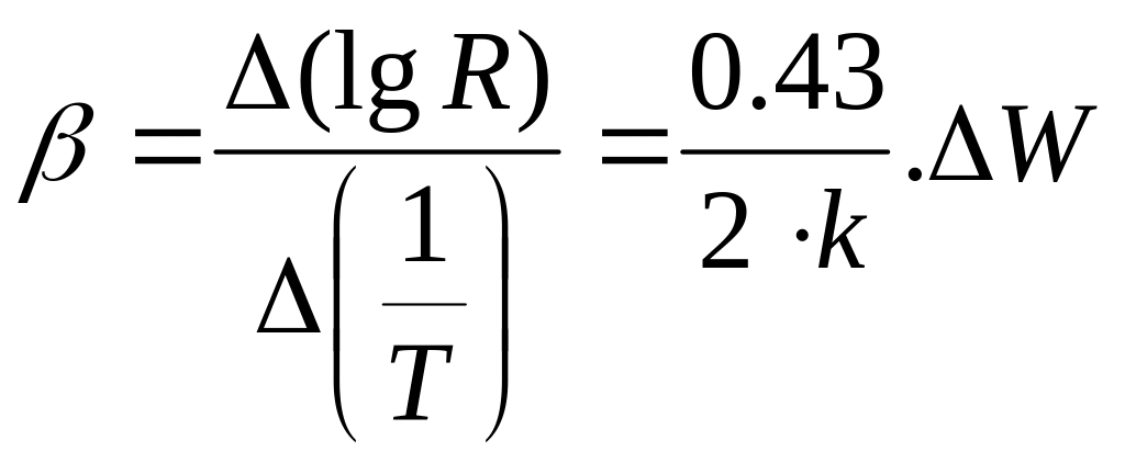 Последнее выражение в координатах lg R и 1/T представляет собой уравнение прямой, по угловому коэффициенту которой