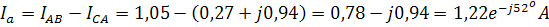 Ic=1,36 A; Ib=0,74 A; Ia=1,22 A.