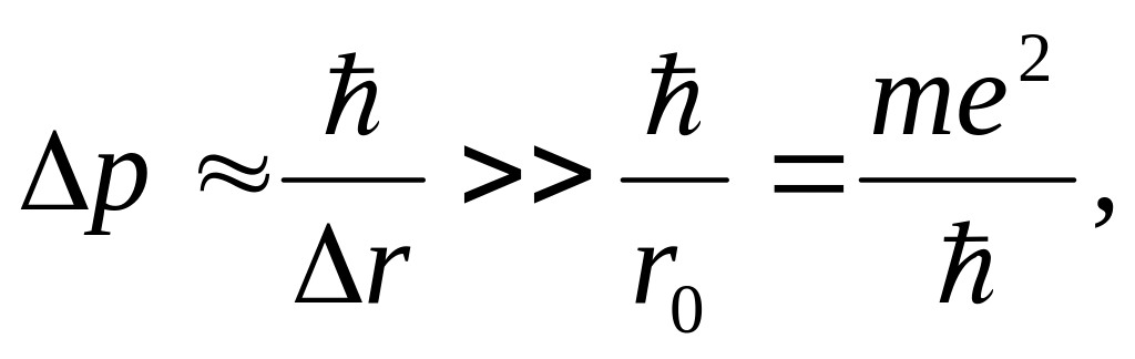 Соотношение неопределенности является одним из фундаментальных положений квантовой механики. Оно, например, позволяет объяснить, почему электрон не падает на ядро, более того, оценить даже размеры простейшего атома и его минимальную энергию. Примем для оценки неопределенность положения электрона в атоме водорода порядка размеров атома и неопределенность импульса порядка самого импульса: Δr ≈ r и Δр ≈ р. Тогда в силу неопределенности имеем rp ≈ ħ. В гауссовской системе единиц энергия электрона в атоме водорода равна