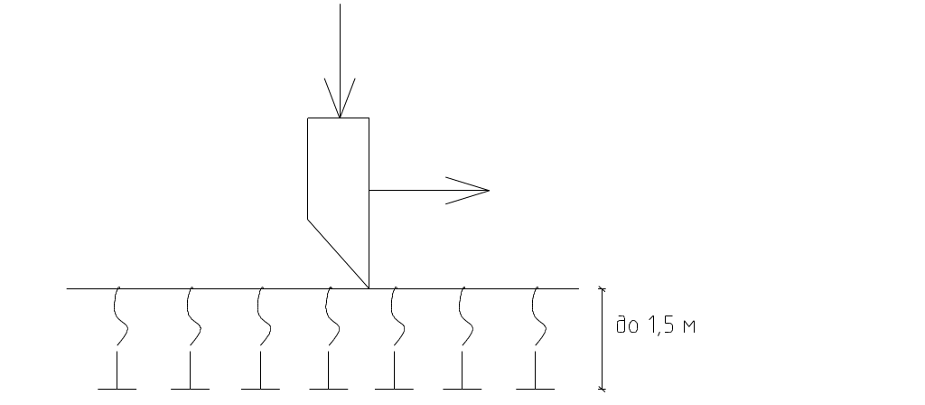 Щели прорезаются боровыми машинами. При укладке зарядов в каждую щель, расстояния между ними приним. 2-2.5 hпр