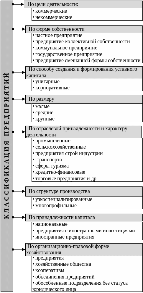 Переход к рыночной экономике обусловил многообразие видов предприятий, которые могут быть классифицированы по ряду признаков (рис.2).