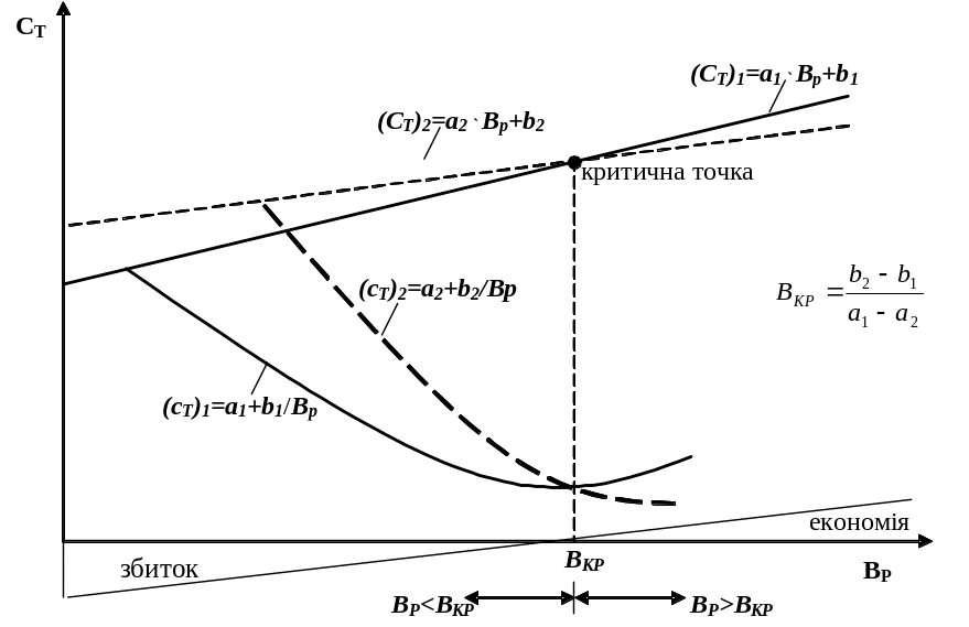 Рис. 14.1. Графік порівняльної оцінки двох технологічних процесів і вибір більш ефективного з них
