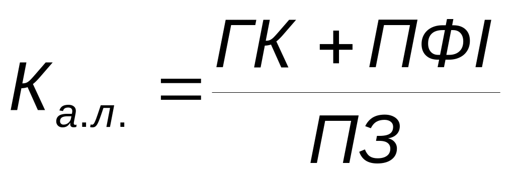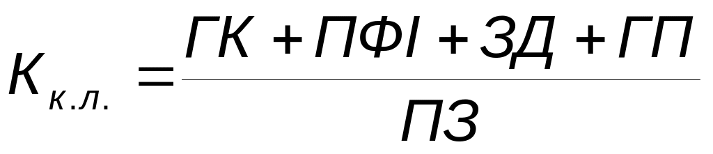 Коефіцієнт критичної ліквідності (фінансового покриття) Кк.л.:
