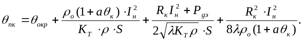 θк – температура контактной детали, принимается равной θуст, определенной для шин;