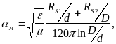 где RS1 и RS2 - поверхностные сопротивления металла внутреннего и внешнего цилиндров одновременно.