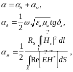9.* Вывести формулу, выражающую коэффициент затухания основной волны коаксиальной линии, стержень и оболочка которой выполнены из разных металлов.