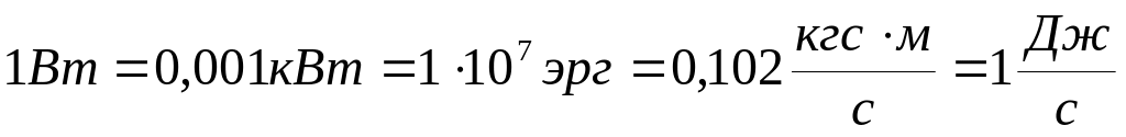 Единица мощности, равная 1 дж/сек, называется ваттом (вm). Величина, равная 1000 вт (или, что то же, 1 кдж/сек), называется киловаттом (кВт)., Соотношение между единицами мощности следующее: