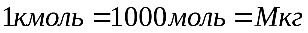 В химической технологии массу часто выражают в молях (моль) и киломолях (кмоль). Под киломолем (или молем) понимают количество вещества в килограммах (или граммах), численнo равное молекулярному весу. Таким образом: