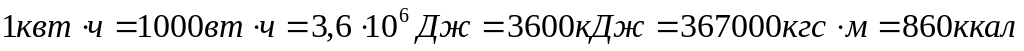 Широко распространены также внесистемные единицы работы и энергии — ватт-час (Вт*ч) и киловатт-час (кВт*ч), а в области тепловых измерений — калория (кал) и килокалория (ккал).