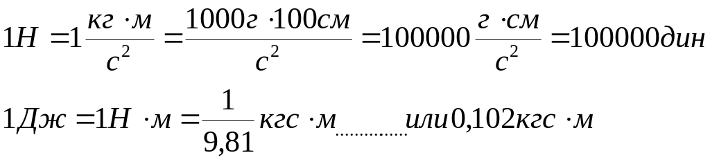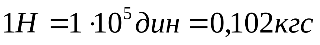 Сила 1 н сообщает телу массой 1 кг ускорение 1 м/сек2, сила 1 дин сообщает телу массой 1 г ускорение 1 см/сек2. Соотношение между единицами силы в различных системах следующее: